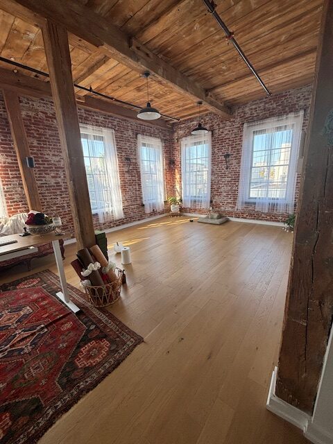Silk Screen Studios offers beautiful, tranquil spaces for yoga instructors and wellness practitioners seeking professional rental opportunities. Our thoughtfully restored historic warehouse features exposed brick walls, heavy timber beams, and abundant natural light — creating an inspiring atmosphere for yoga practice. Located near Fishtown, & Northern Liberties, we are located in a thriving creative community that provides a welcoming environment where your yoga or wellness practice can flourish. Our building has exceptional amenities to ensure you and your clients feel welcome.